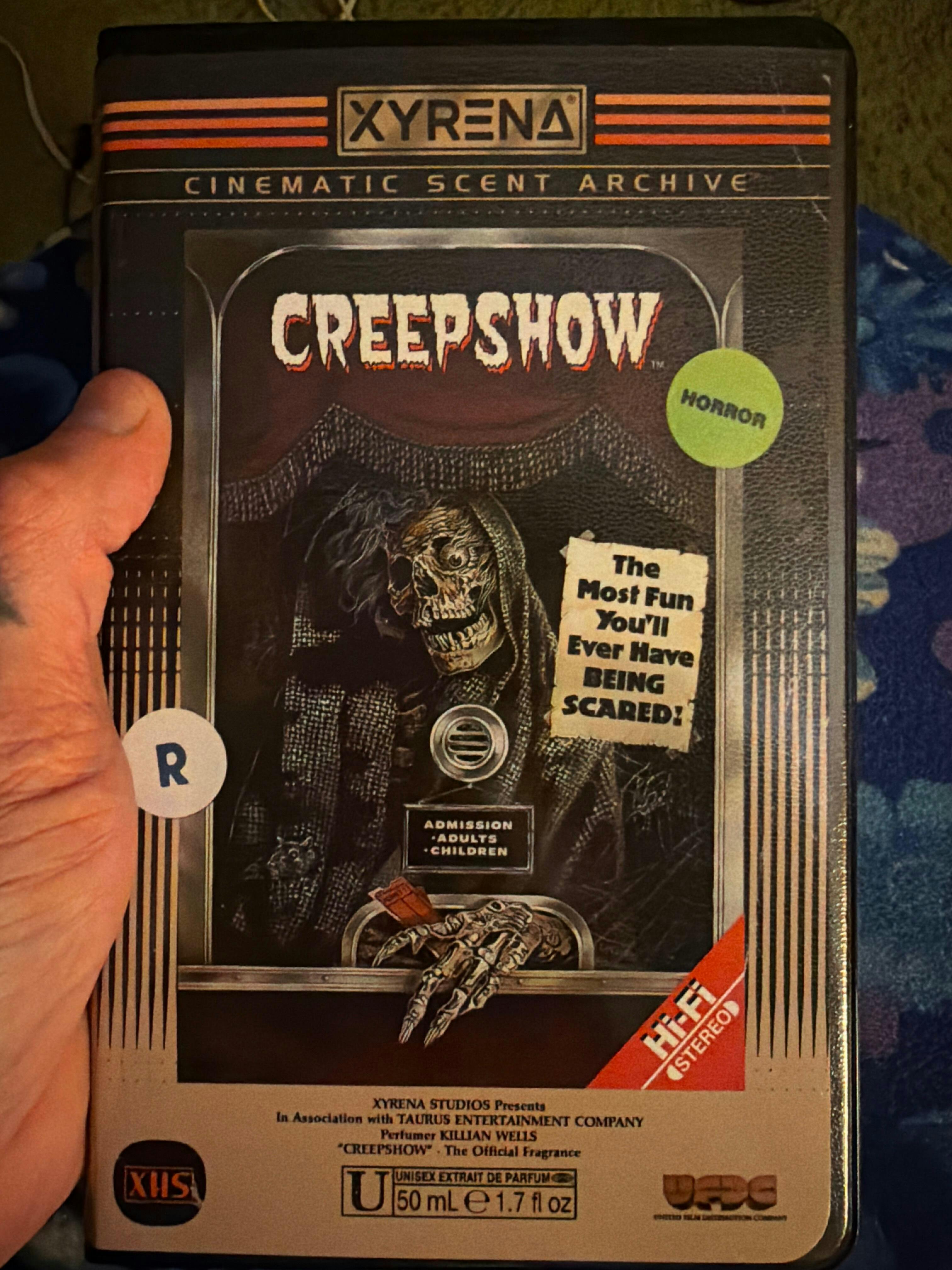 When perfumer Killian Wells originally created Cinemaniac in 2016, he was heavily inspired by the iconic poster for the 1982 classic Creepshow and the film’s anthology of spooky short stories by The Master of Horror - tales that recall a time when double features, grindhouse screenings, and all-night horror movie marathons were still thriving. Now, with the Cinematic Scent Archive™, that creative vision comes full circle as this infamous fragrance is re-released as the official Creepshow perfume, presented in Xyrena’s trademark collectible packaging.